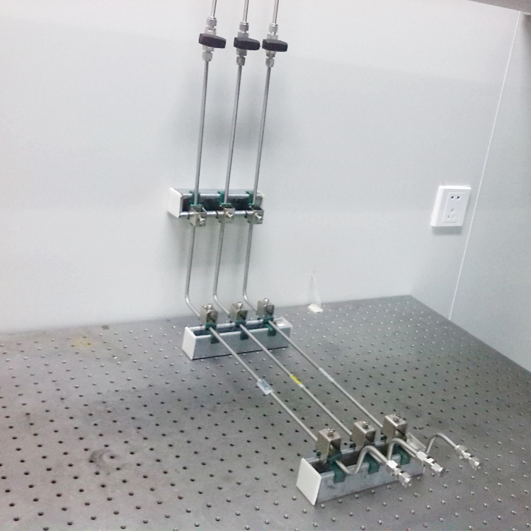 針對過去使用中存在的問題,現(xiàn)代實驗室對載氣的使用環(huán)境進行了改革,即 “集中供氣系統(tǒng)”,即將使用氣體(以下簡稱載氣)集中貯存,然后通過壓差的原理將氣體經(jīng)過金屬或其他材質(zhì)管路送至用氣點。其優(yōu)點主要有以下幾點: