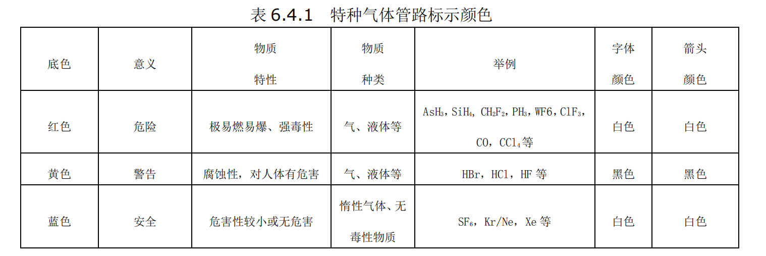 特種氣體管路標(biāo)識(shí)要求: